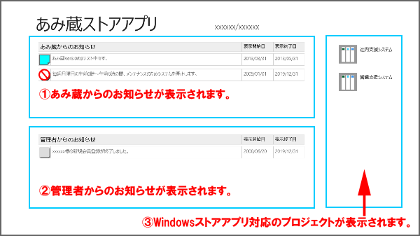 このように、あみ蔵WEB版で作成したプロジェクト(Windowsストアプリで利用を指定)は、そのままWindowsストアアプリで実行することができます。次回は、あみ蔵ストアアプリの画面の操作の詳細について説明を行います。