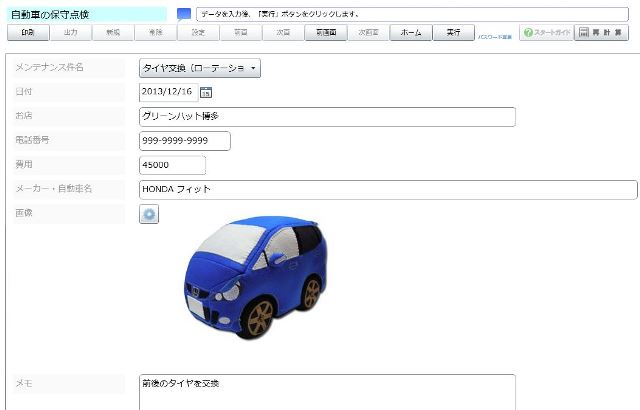 いつも忘れがちな「自動車の保守点検」の記録を、簡単にデータベースで管理することができます。