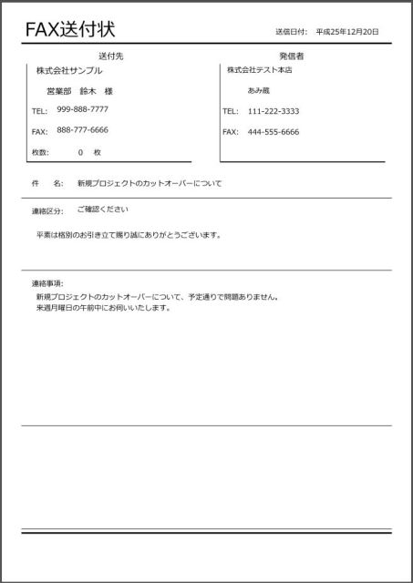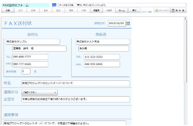 一般にはワープロで作成しているだけの場合が多いFAX送付状ですが、あみ蔵を利用することにより、事前に「ひな形」を作成して、後はコピーするだけで簡単に作成することができます。