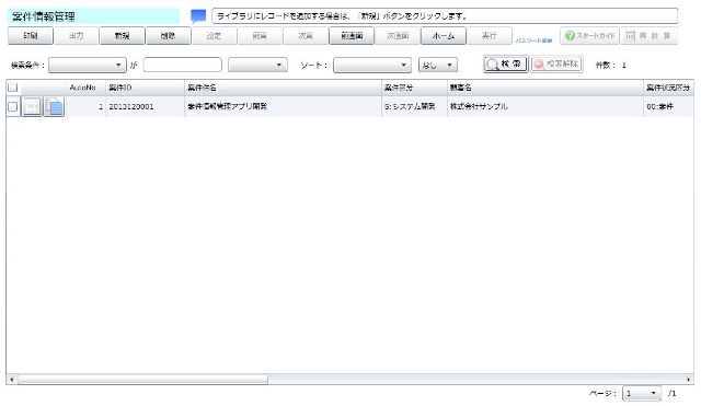 案件情報管理を構築すると、登録済みの案件に対して、顧客、担当者、案件区分、ステータスなどの各種の条件で検索することができます。